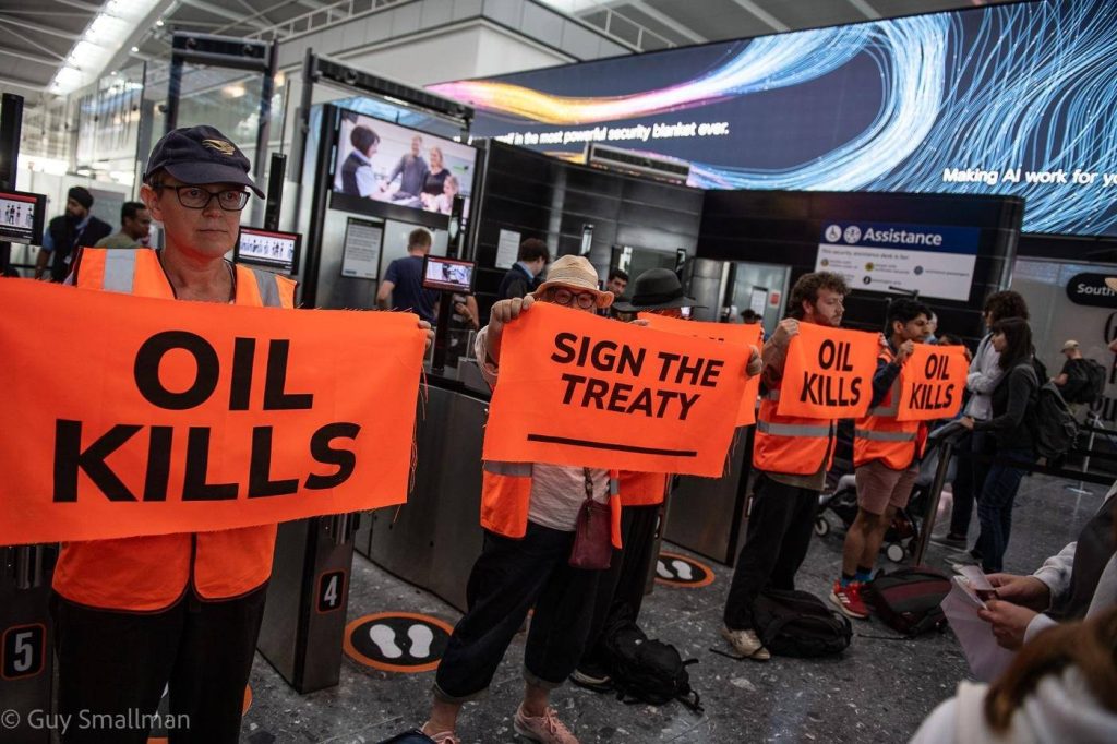 [1] Oil Kills is an international uprising to end fossil fuels – an unprecedented coalition of civil resistance groups from over 10 countries across Europe and North America. We are taking nonviolent collective action at airports – a key pillar of the fossil fuel economy – to demand an end to oil, gas and coal by 2030.