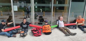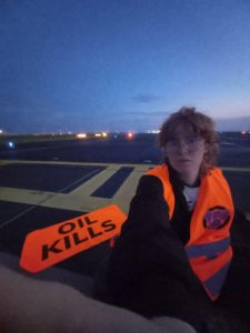 Action takers in Germany and United Kingdom target major airports for Oil Kills International Uprising
